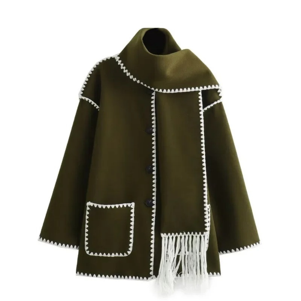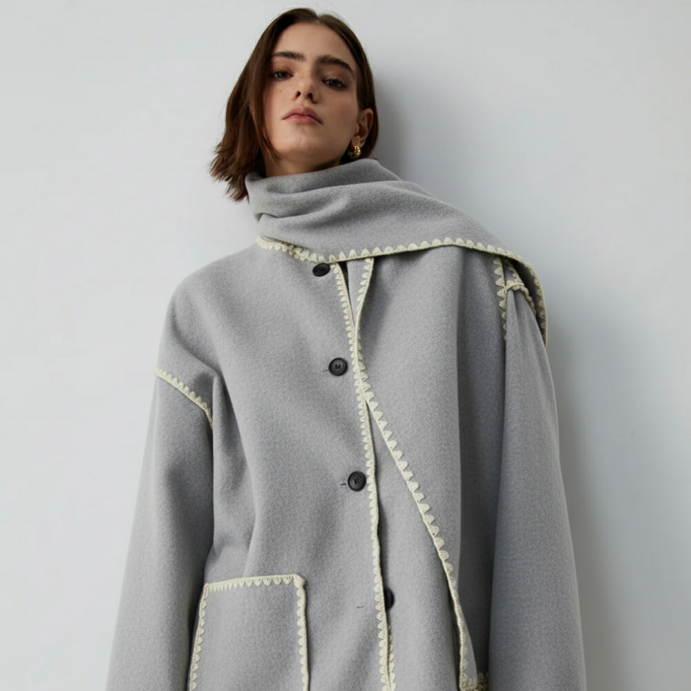 Dames Wol Overjas met Sjaalkraag