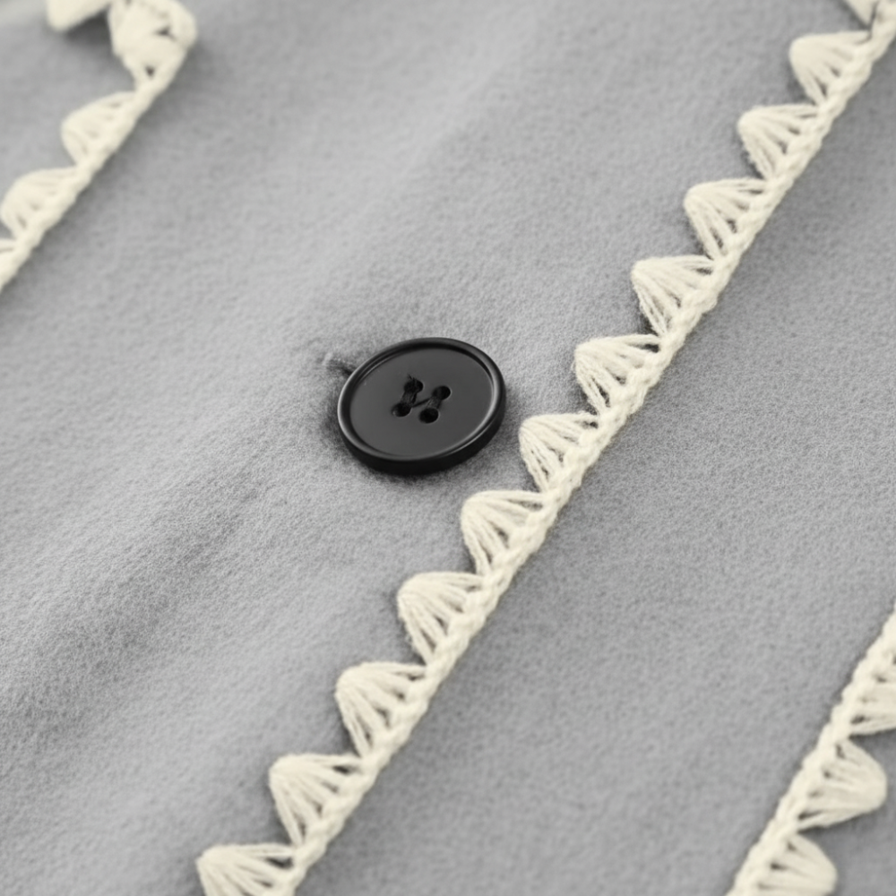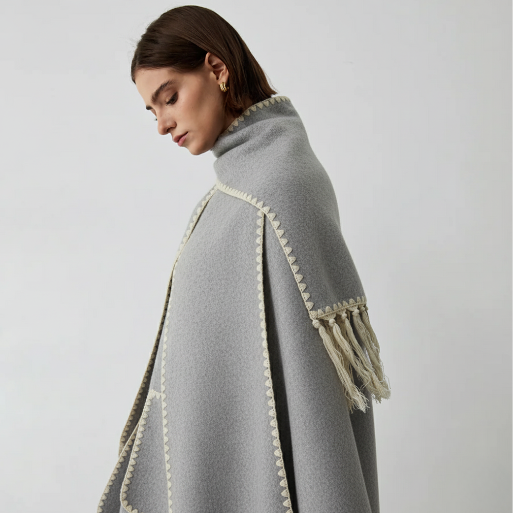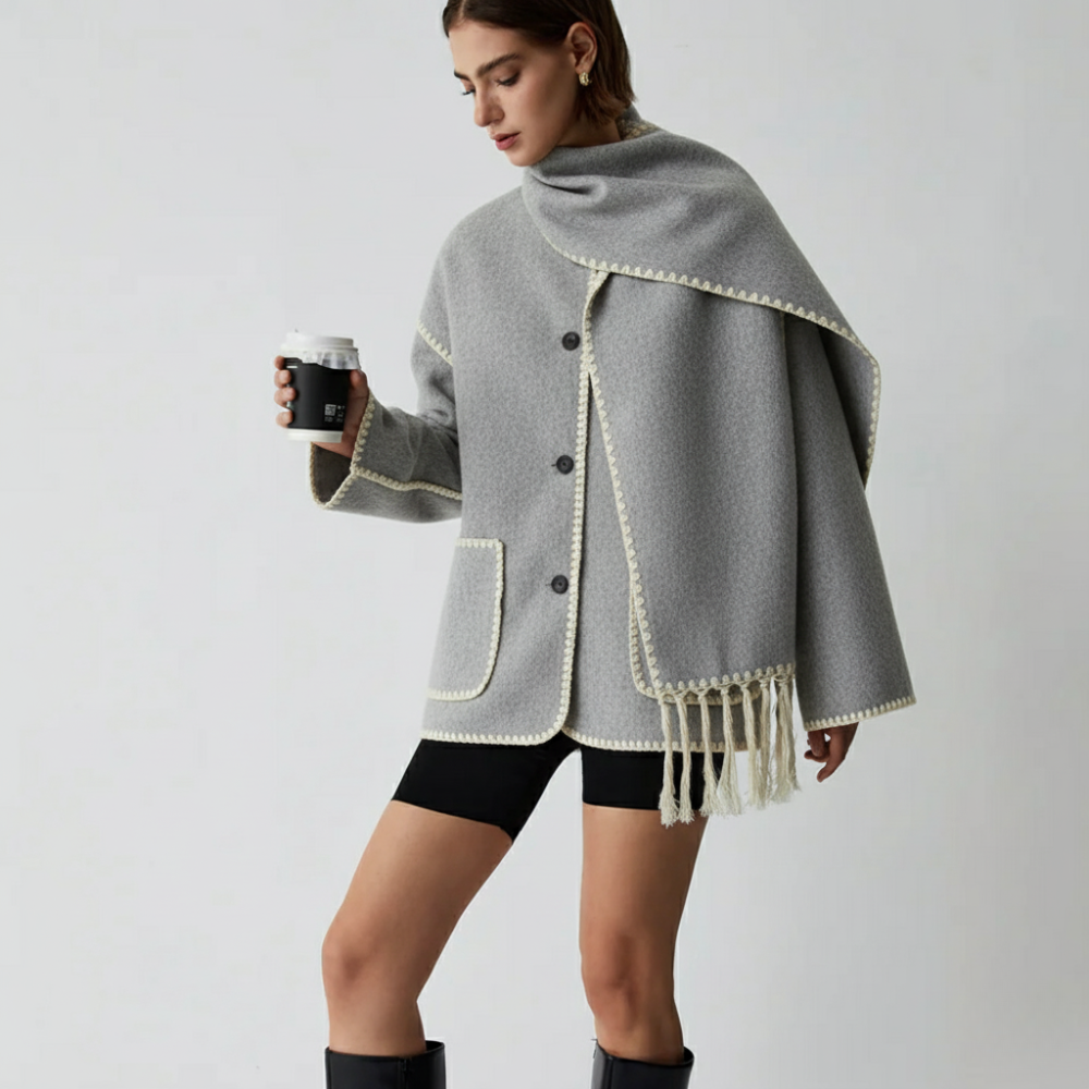 De Dames Wol Overjas met Sjaalkraag is ontworpen voor verfijnd comfort en moderne elegantie. Hij is gemaakt van zachte wol met contrasterende randen en kwastjes en biedt warmte en verfijning voor koude dagen. Perfect voor stadswandelingen of avondjes uit, en past prachtig bij laarzen en een leren handtas. Alleen chemisch reinigen om de structuur en textuur te behouden.