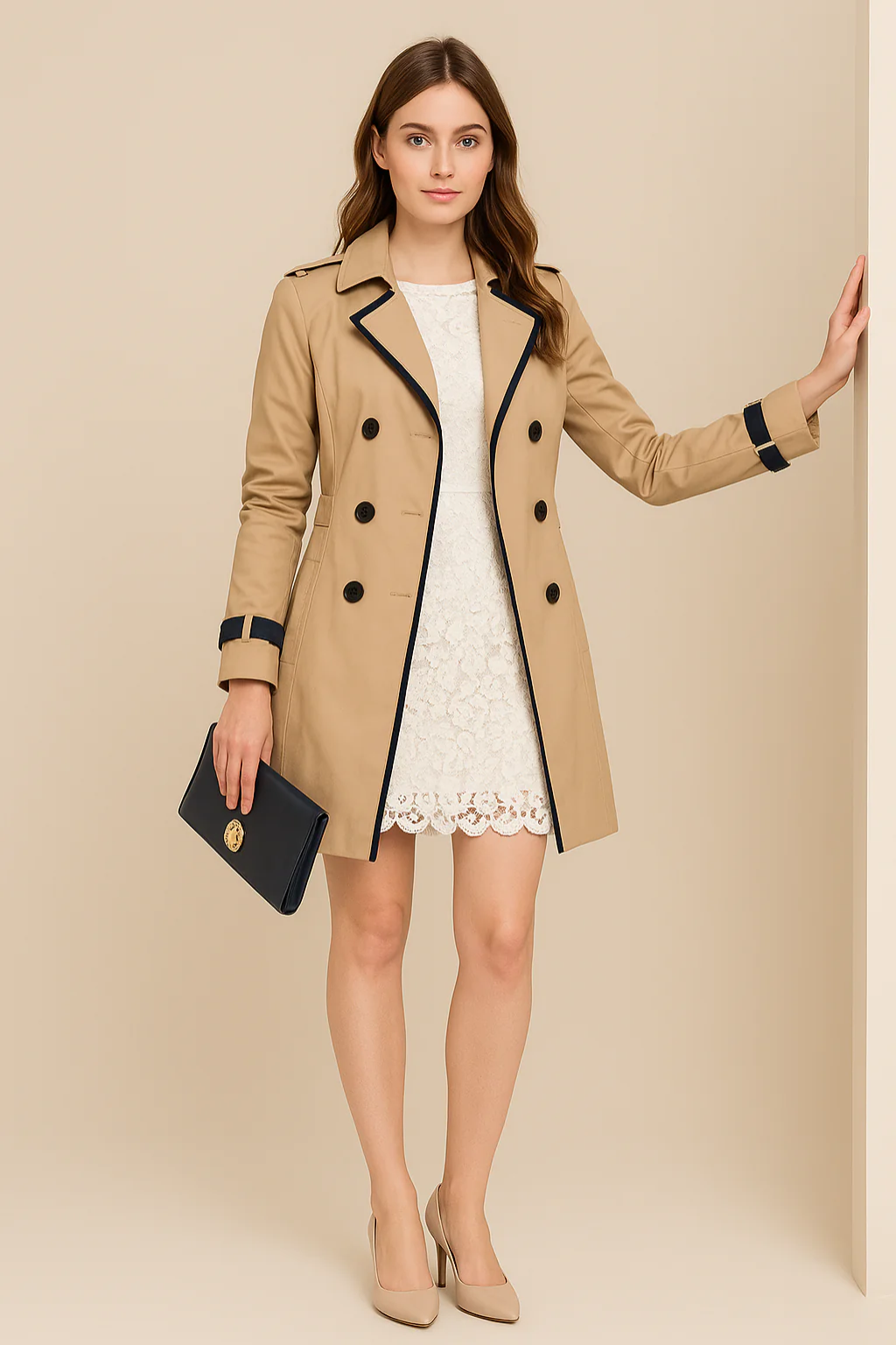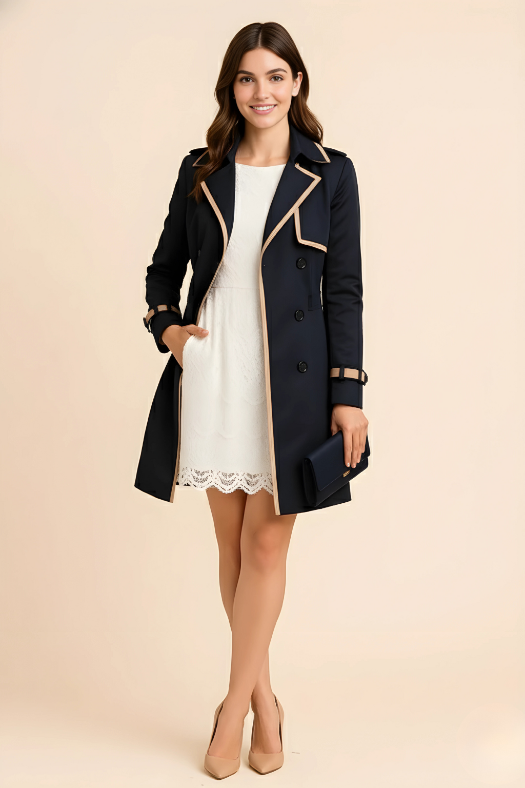 Dubbelrijige Trenchcoat met Contrasterende Details