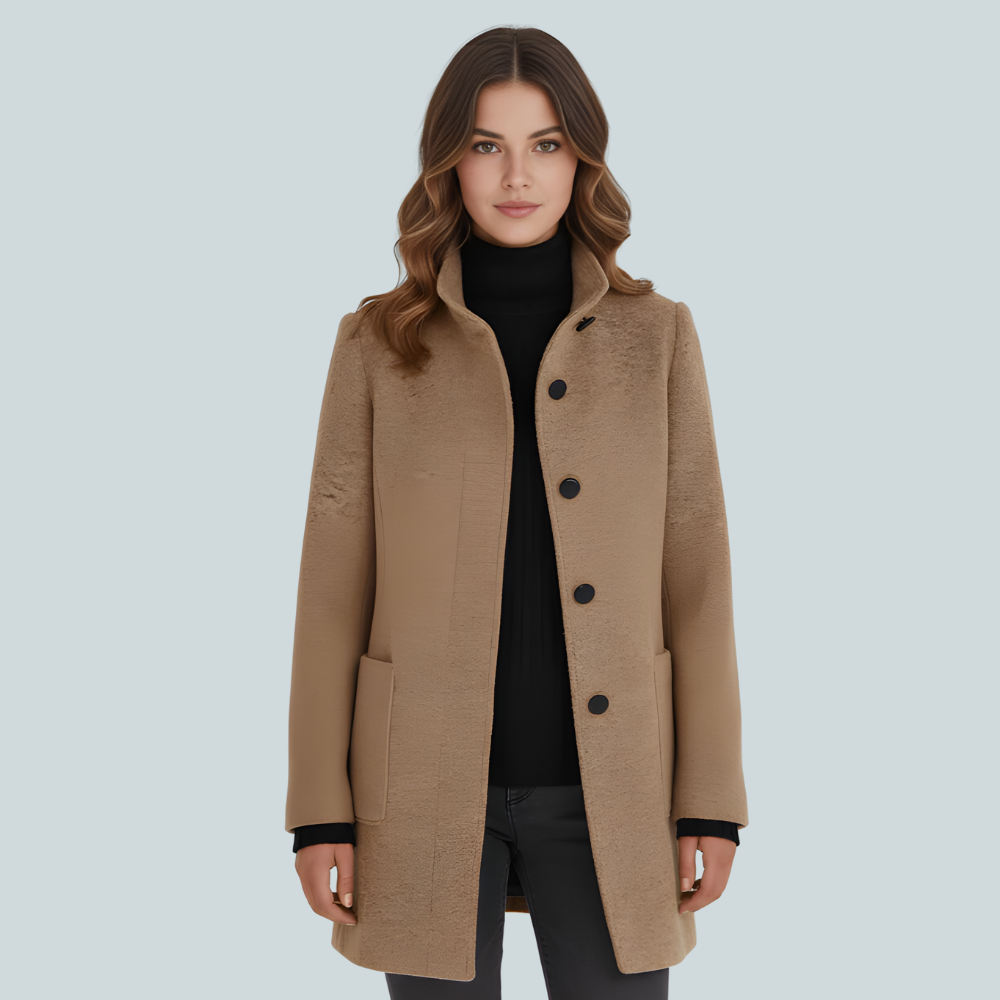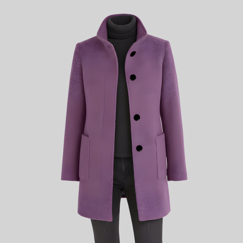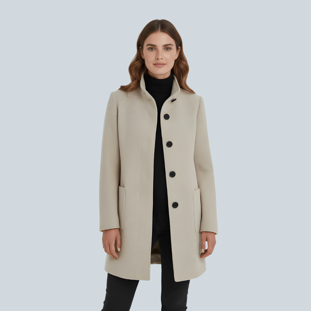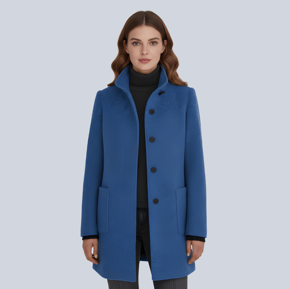 Elegante Winterjas Van Wolmix met Opstaande Kraag