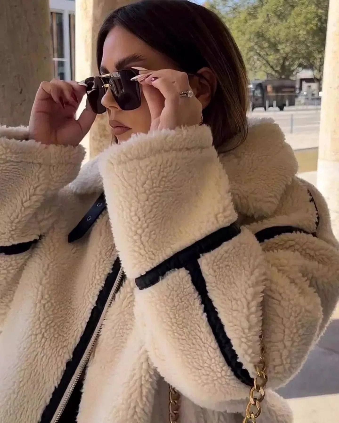 - Materiaal: Imitatiebont (imitatie schapenvacht/teddytextuur)