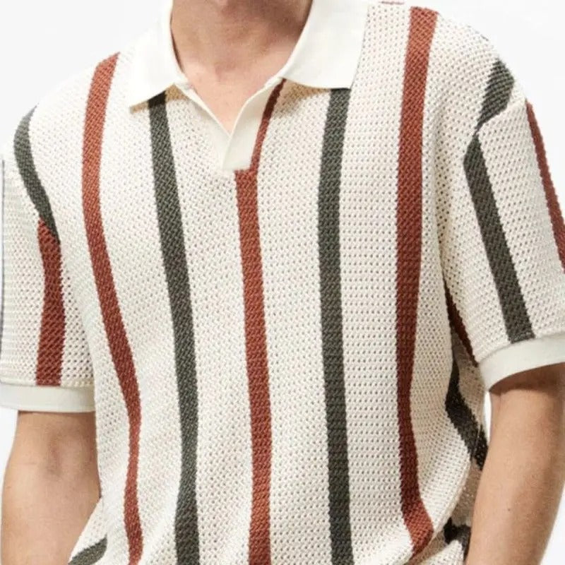 Gestreepte gebreide polo met revers voor heren