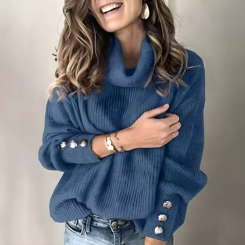 Casual Gebreide Trui met Hoge Kraag en Knoopsluiting