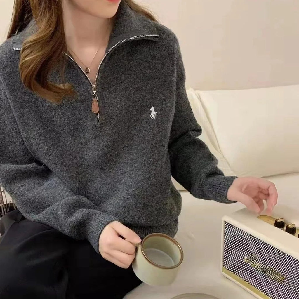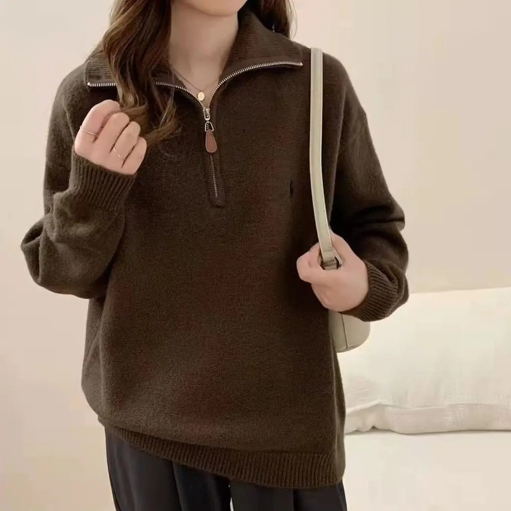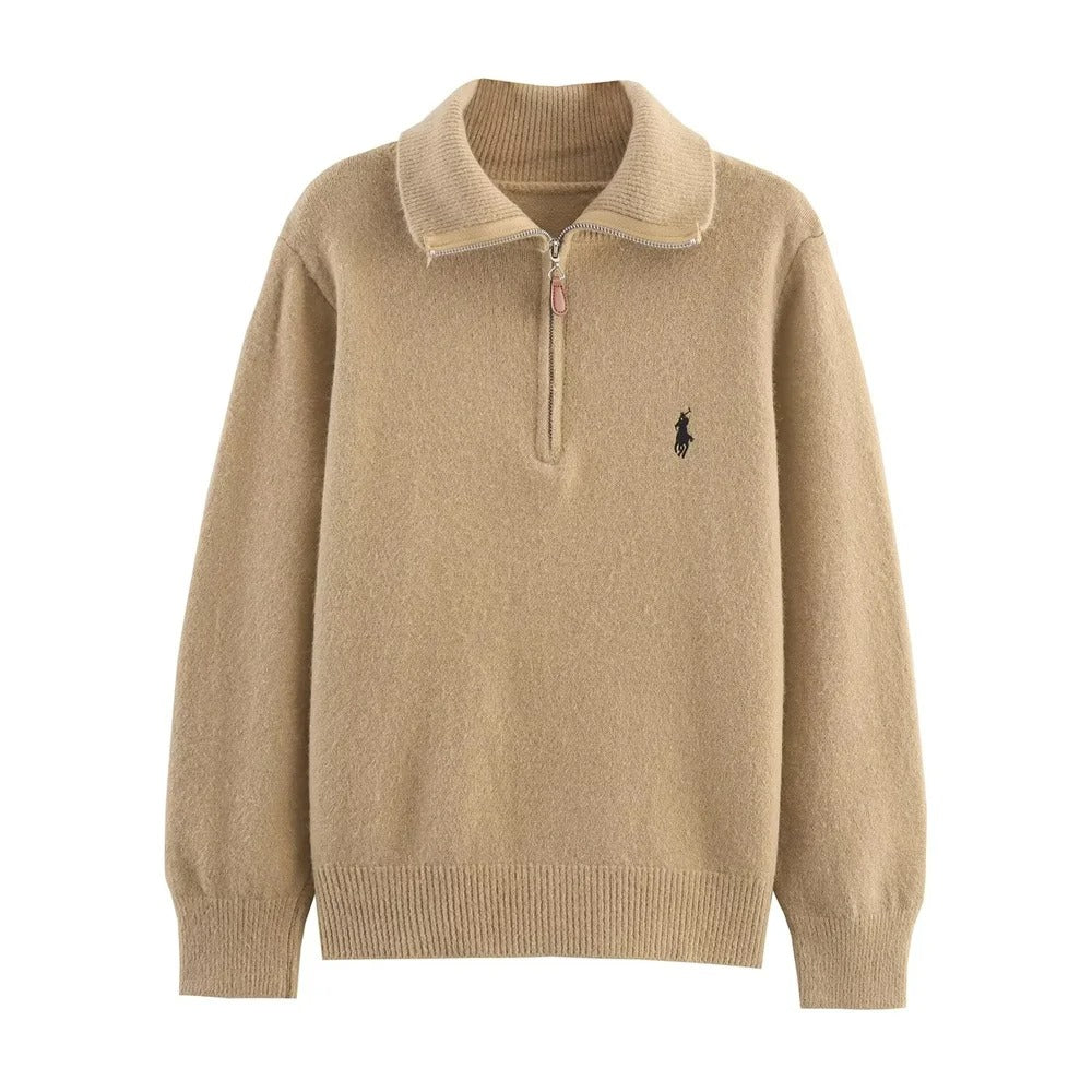 Minimalistische effen gebreide trui met halve rits