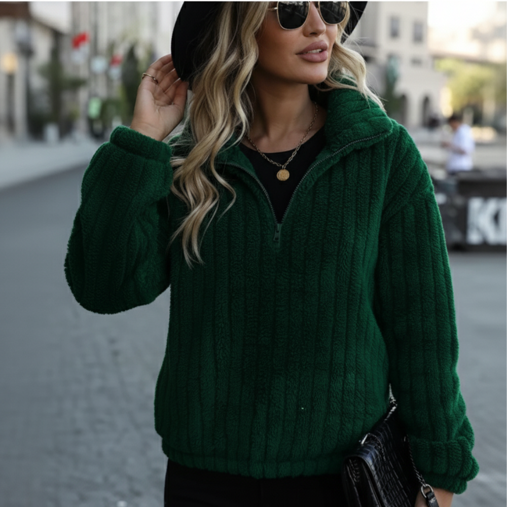 Dames Fleece Half-Zip Trui met Zakken – Zachte en Gezellige Pullover