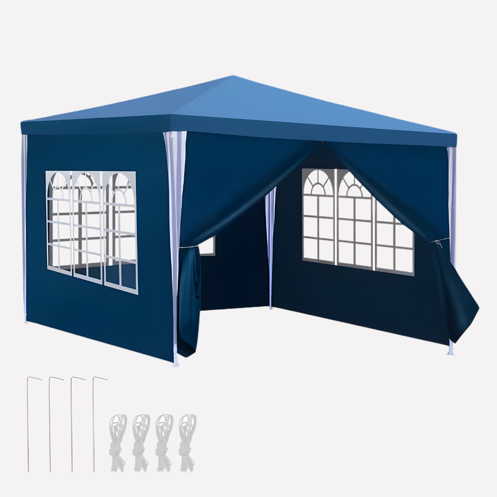 Deze partytent voor in de tuin is ontworpen om een ​​praktische, overdekte ruimte te bieden voor buitenbijeenkomsten, evenementen en seizoensgebruik. Het stevige frame en de luifel creëren een afgebakende ruimte die geschikt is voor feesten, familiebijeenkomsten of tuinactiviteiten. De verwijderbare zijpanelen zorgen voor flexibel gebruik, afhankelijk van de weersomstandigheden en de behoeften van het evenement.