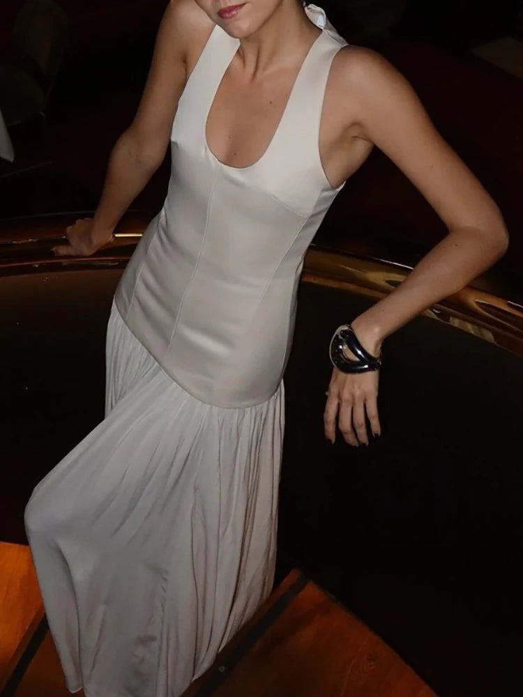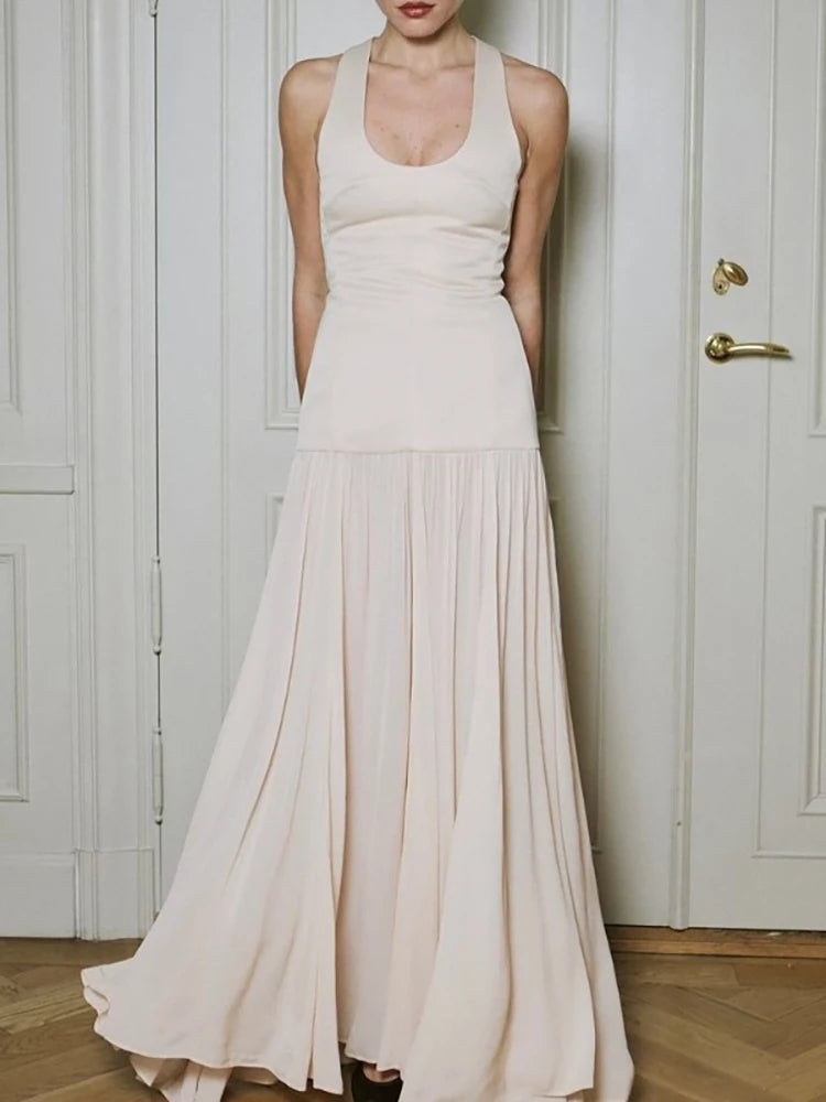 - Moderne Mouwloze Snit – Een eigentijdse touch die je armen en schouders benadrukt.
