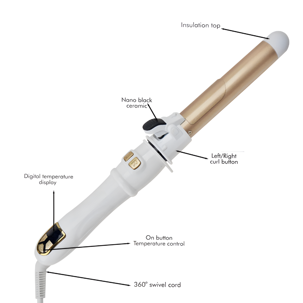 - Automatische Rotatie: Bereik je gewenste look met slechts één druk op de knop, dankzij het ergonomische en soft-touch handvat.