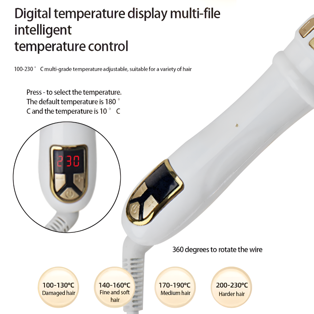 - Aanpasbare Temperatuur: Geschikt voor alle haartypen, met instelbare temperatuur om je haar te voeden en te beschermen.